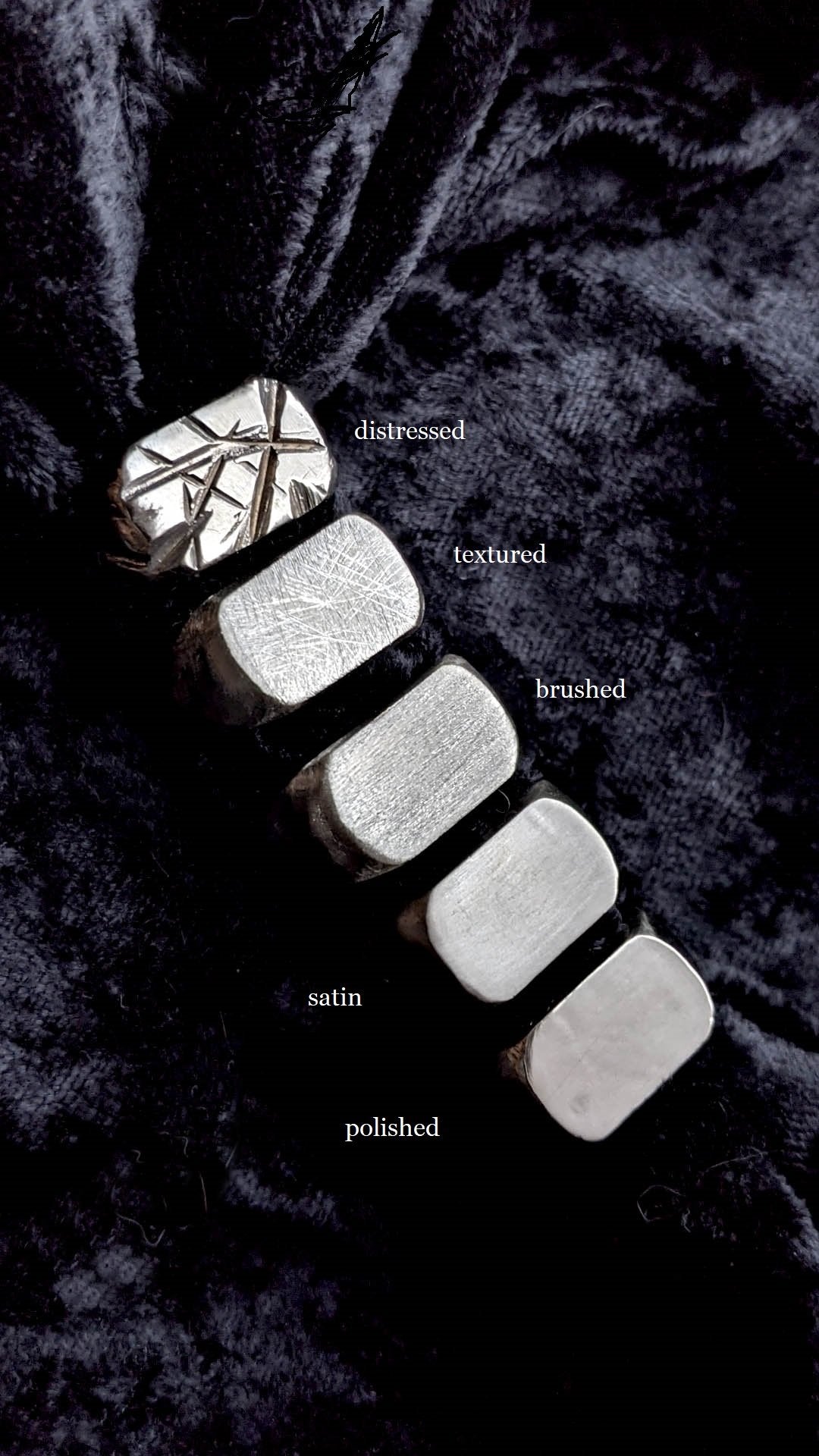 A fresh take on tradition, the Stacking Signets collection features a variety of hand-carved shapes designed to mix, match, and layer with intention. Each ring is made to stack seamlessly, whether you're building a bold look on one finger or scattering them across both hands for something more playful.